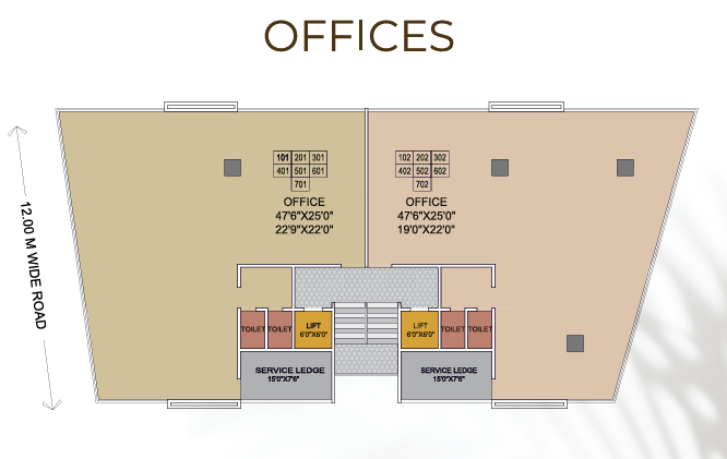 The office spaces are equipped with modern fittings and flexible layouts, ideal for corporate needs.